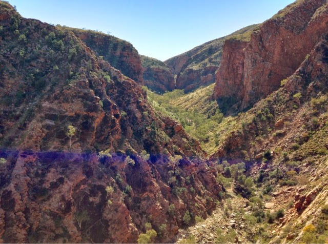 Our first stop of the morning was Ellery Creek. With the recent rain, the waterhole was full of water, which looked deep and cold. It was crystal clear, with not a ripple on the surface, and Jo tried to capture its beaty armed with Kylie's hot photography tips. I gave up trying with the iPhone, and instead took a couple of snaps of the kids having fun.